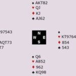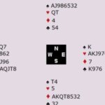 On the next board too, India scored when Ananya and Jasith were allowed to bid the no trump game without interference. In the closed room, Prakhar opened  1. This probably led East West to reach for the spade game.